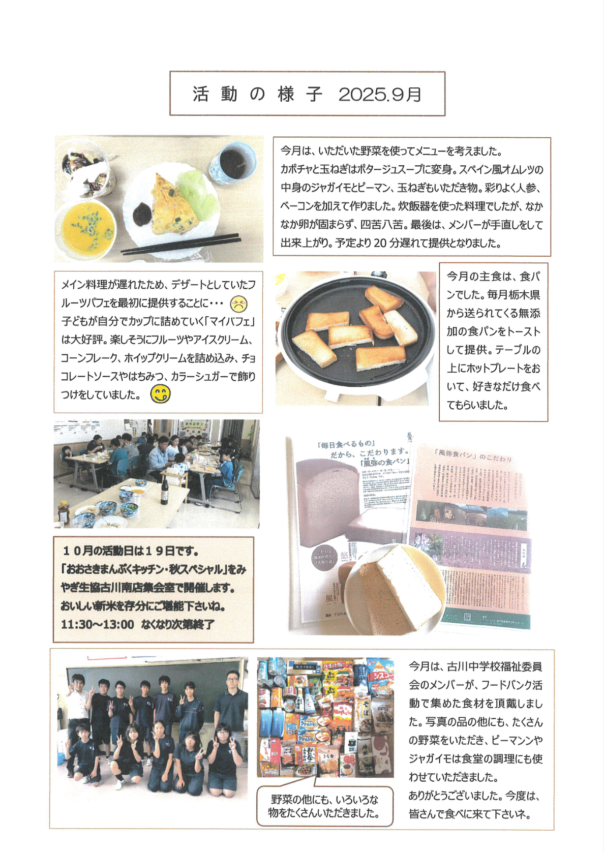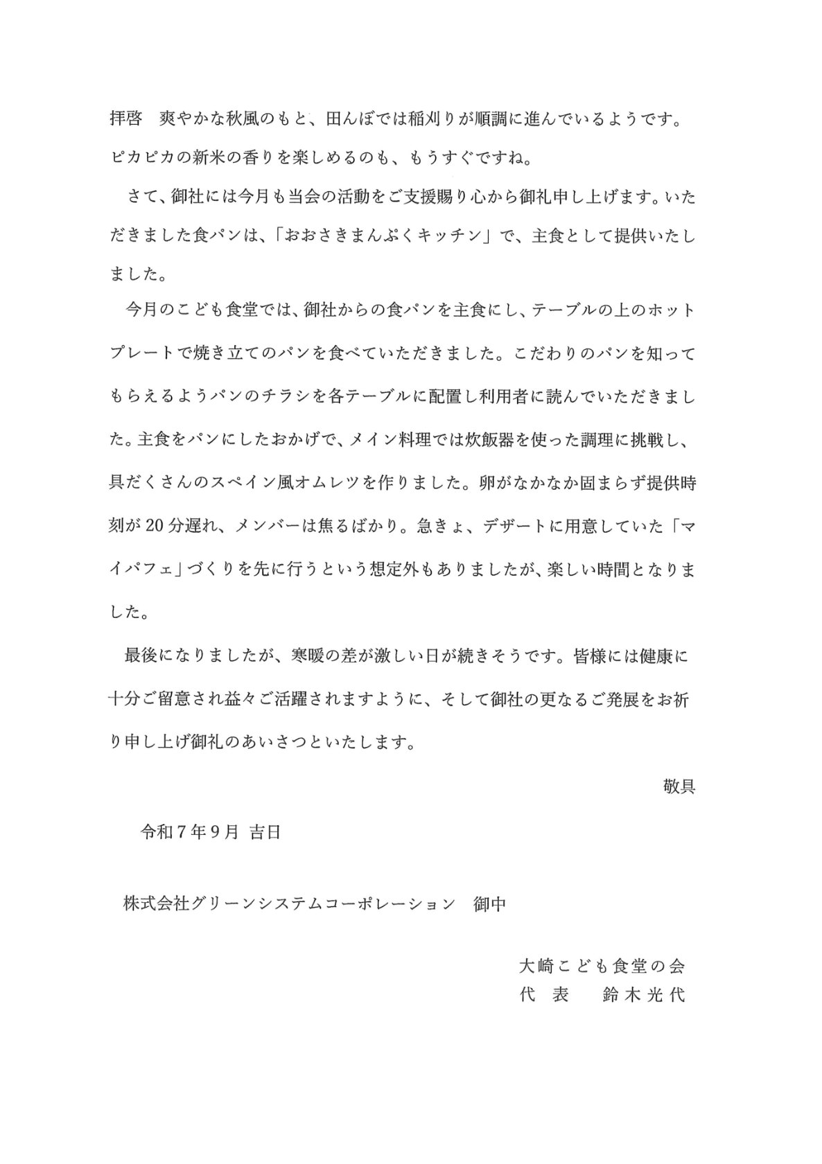 9月は、下記10箇所へ268個の食パンを贈りました。