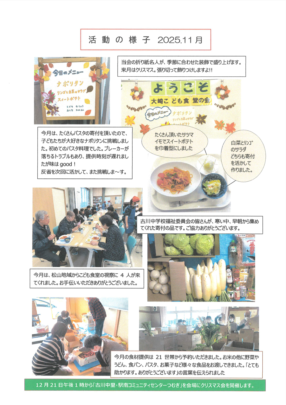 11月は、下記10箇所へ268個の食パンを贈りました。