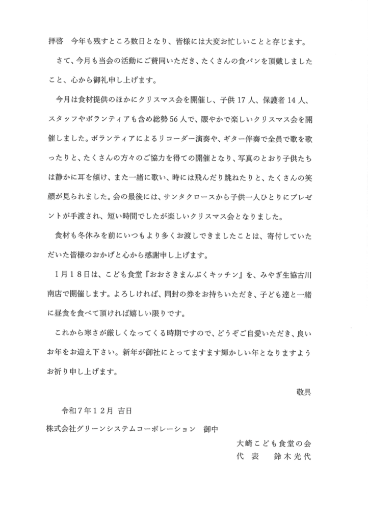 12月は、下記10箇所へ268個の食パンを贈りました。